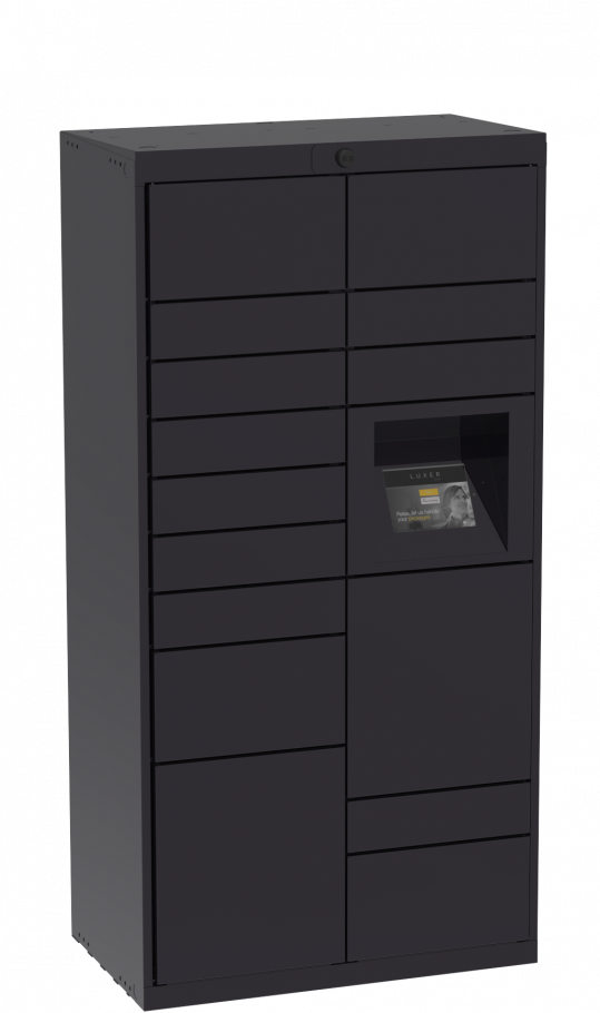 The main unit contains a touchscreen, battery backkup, electronics and 15 compartments of varying sizes. Add on units come in various sizes and designs. All units come in indoor or outdoor options.