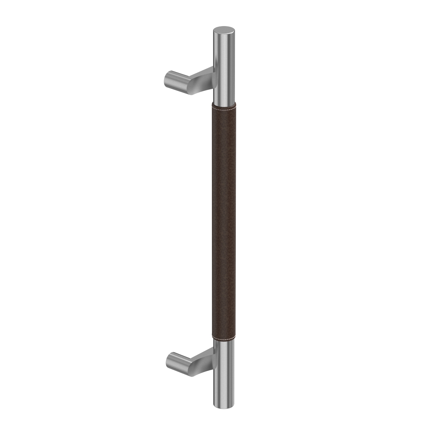 Standard Metal Hardware’s sophisticated leather wrap architectural door pull with offset H posts and flat ends is available in five materials, with 22 finish options including flat black. Lengths can be customized to suit your design.